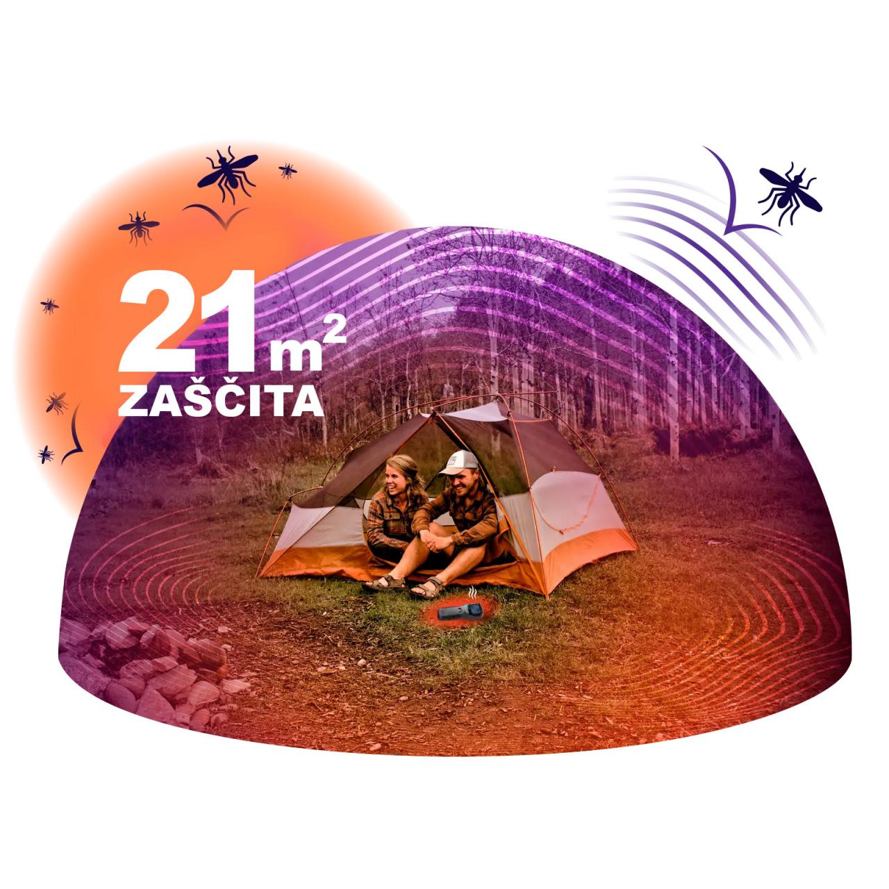 - Stvara područje zaštite od komaraca od 21 m².