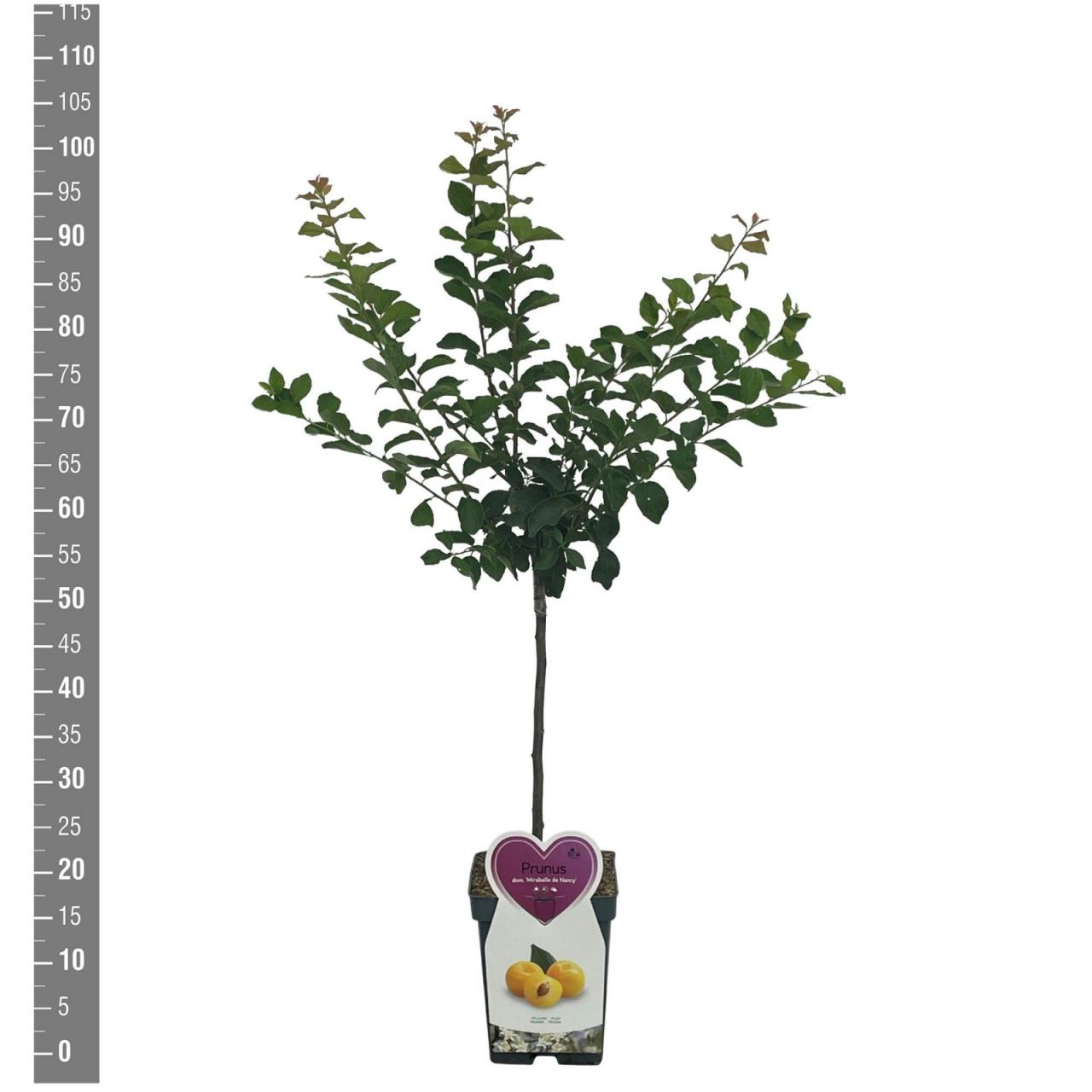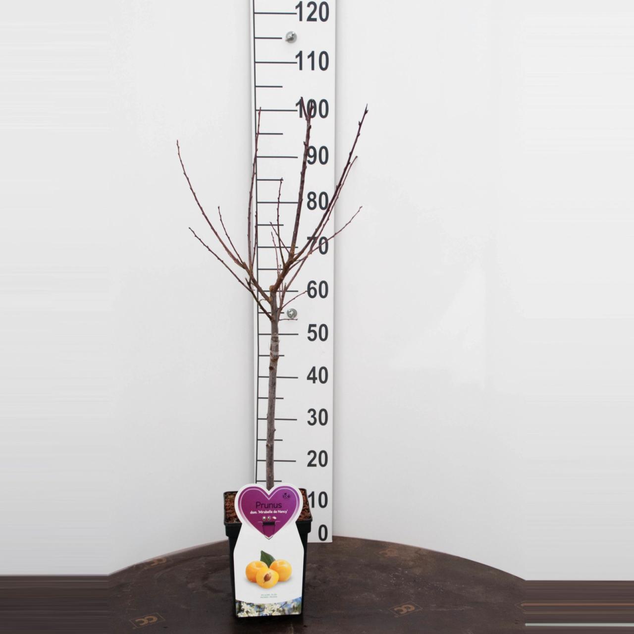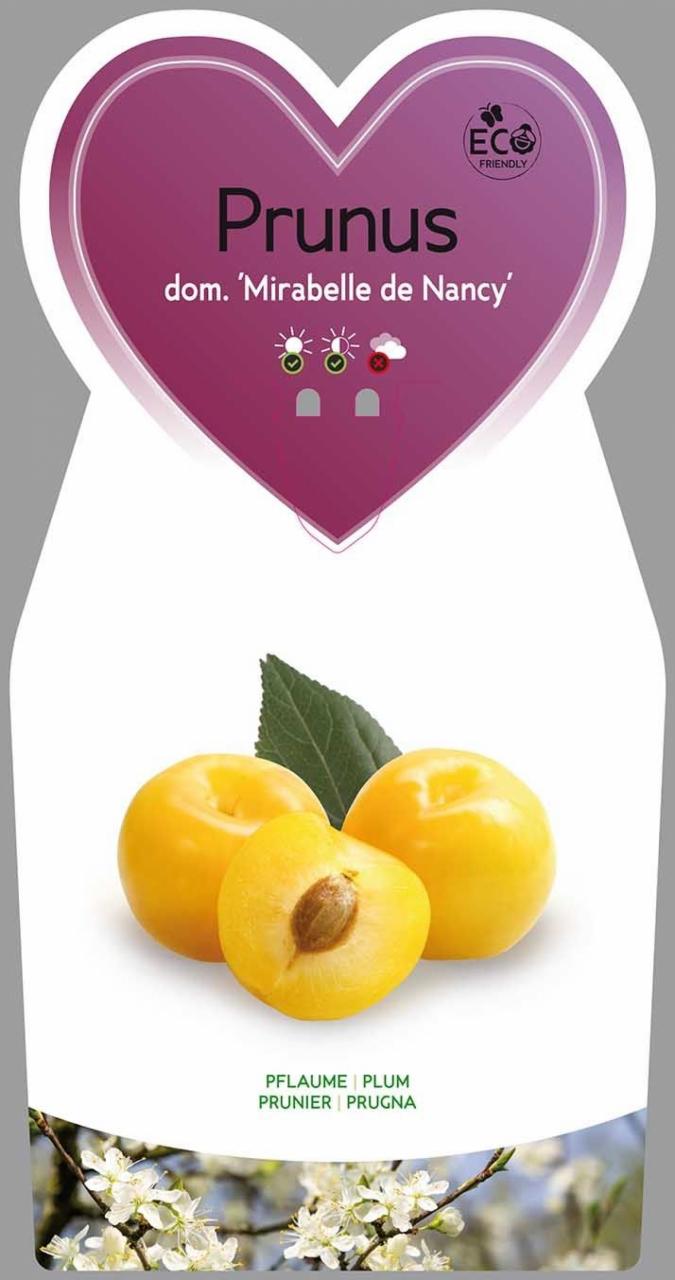 Patuljasta mirabella Mirabelle de Nancy je otporna sorta koja doseže do 2 metra visine i 1,8 metara širine. Cvjeta rano i dozrijeva u kolovozu. Plodovi su srednje krupni, žute boje, a meso je čvrsto, aromatično, sočno i slatkog okusa. Rod je redovit i visok. Sorta je vrlo dobar oprašivač za ostale sorte mirabelle. Sorta je samooprašujuća.