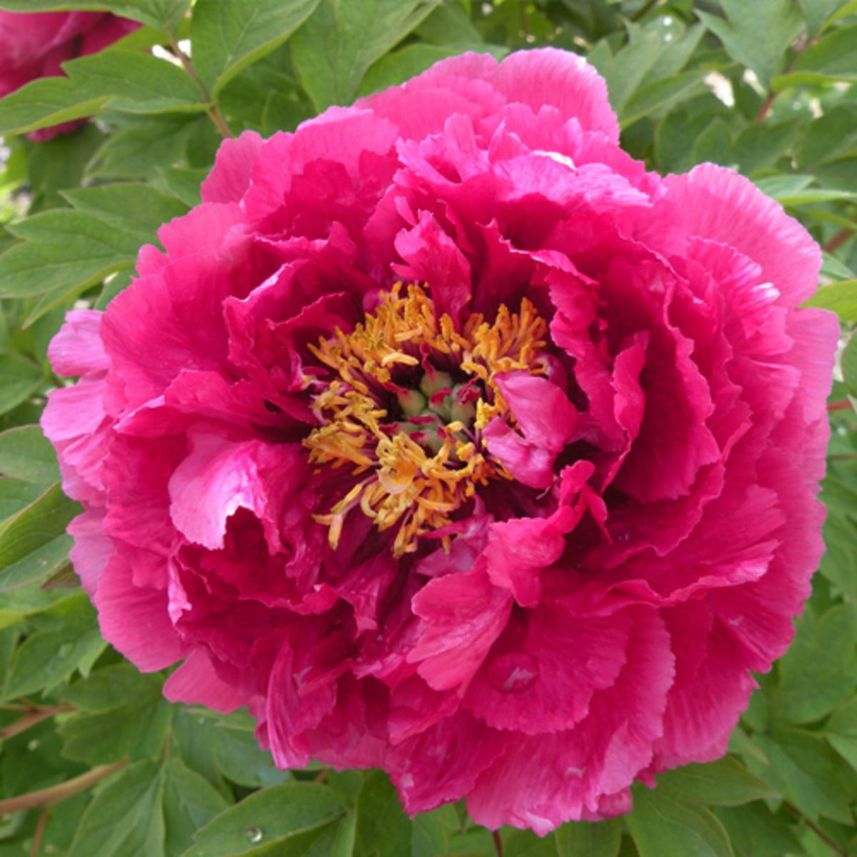 Drvenasti božur Lou Yang Hong je otporna trajnica grmolikog rasta i velikih ružičasto-ljubičastih cvjetova. Drvenaste stabljike pružaju dobru potporu brojnim cvjetovima - čak i po vjetru i kiši, tako da biljci nije potreban oslonac. Posadite biljku na sunčano mjesto, u dobro drenirano tlo.