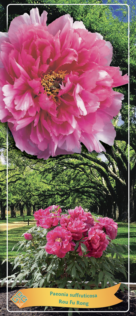 Paeonia suffruticosa 'Rou Fu Rong', također poznata kao 'Nježno-ružičasti hibiskus' ili 'Ružičasti lotosov božur', drvenasti je božur cijenjen zbog svojih velikih, dvostrukih cvjetova u bogatim nijansama ružičaste. Cvjetovi dosežu promjer od oko 17-18 cm i pojavljuju se od kasnog proljeća do ranog ljeta.