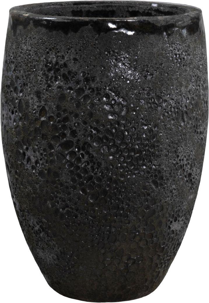 Keramička posuda ima glaziranu crnu površinu koja izgleda elegantno i moderno, a istovremeno sprječava upijanje vode. To pruža zaštitu od prljavštine, vlage i drugih čimbenika koji bi mogli utjecati na izgled posude, a istovremeno omogućuje jednostavno čišćenje.